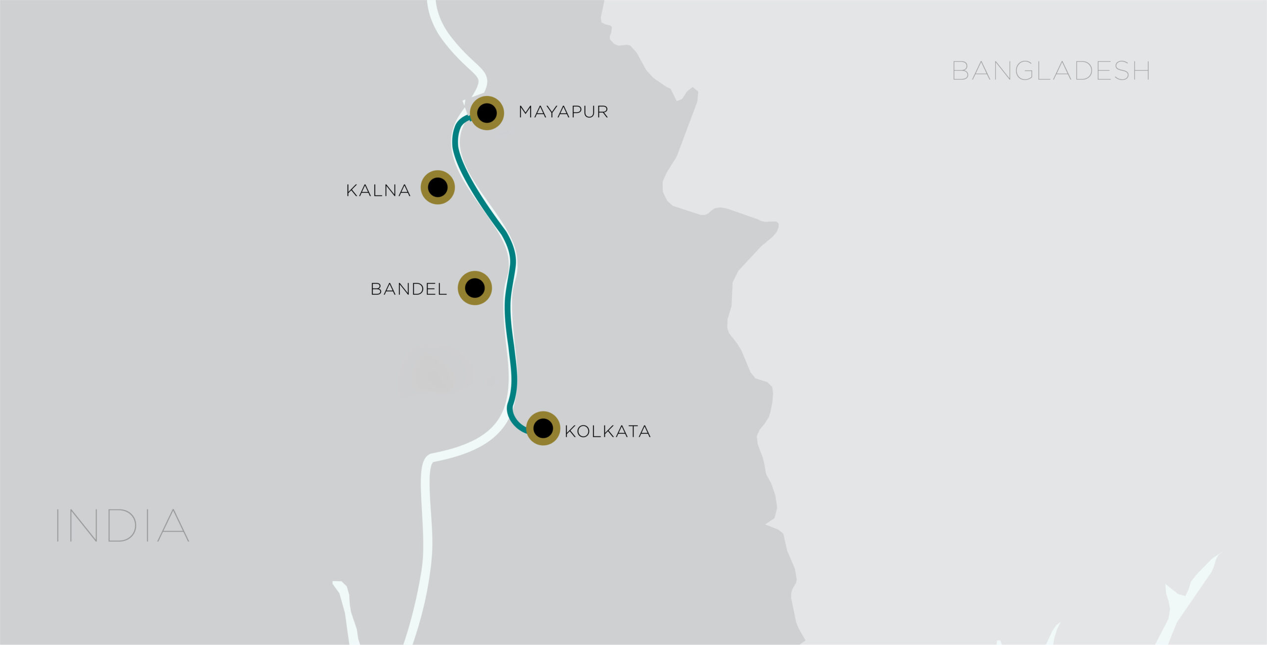 - Transfers to/from Kolkata and Mayapur for embarkation/disembarkation.