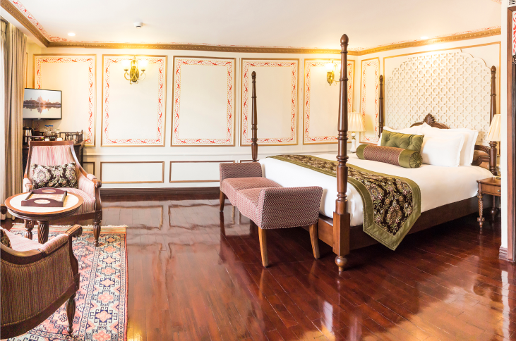 The most luxurious and spacious suite aboard, with 400 sq. ft. of space, the Maharaja Suite is a haven of luxury.