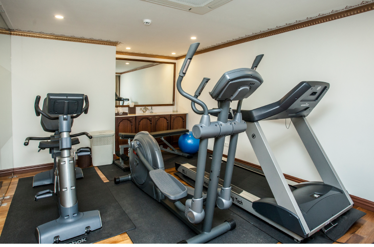 For those who wish to maintain their routine of a morning run, our gym – adjoining the spa – houses a treadmill, an exercise bike and an elliptical machine.