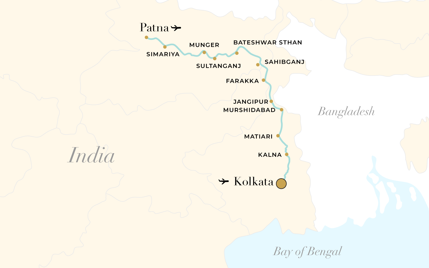 Following the Ganges river’s course downstream from ancient Patna through several tributaries to reach the Hooghly in Kolkata. A journey traversing through historical, archaeological, and cultural sites.